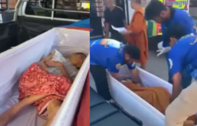 “When we opened the coffin, we saw her moving,” Pairat said. “She was opening her eyes slightly and knocking for quite some time.”