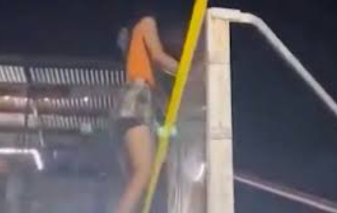 In a video shared by TMZ, the woman can be seen scaling a basketball hoop as a cheering crowd looks on. Once she reaches the top and balances on the rim, she starts twerking for the excited onlookers below, fully committing to the moment.