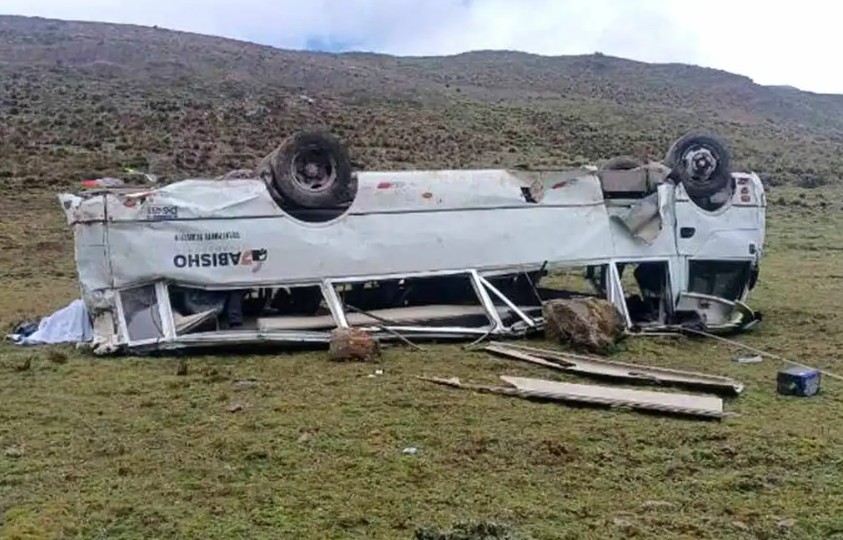 According to the Fire Company of La Oroya, the bus overturned in the mountainous terrain while carrying around 25 tourists and tour guides.
